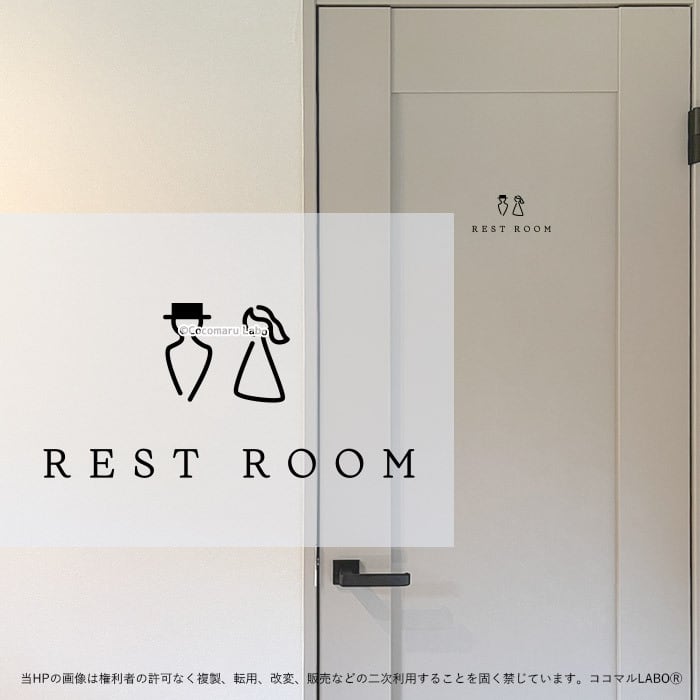 【グレース】 ドアステッカー 5. RESTROOM 人 トイレ お手洗い ルームサイン ステッカー 明朝 ピクトサイン イラスト アイコン シンプル アルファベット 小さめ インテリアステッカー ウォールステッカー ドア おしゃれ インテリア