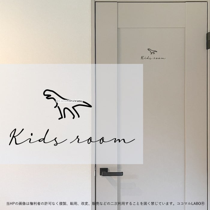 【カーシブ】 ドアステッカー 13.KIDSROOM 恐竜 キッズルーム こども部屋 筆記体 ルームサイン ステッカー ピクトサイン イラスト アイコン シンプル 小さめ インテリアステッカー ウォールステッカー ドア おしゃれ インテリア
