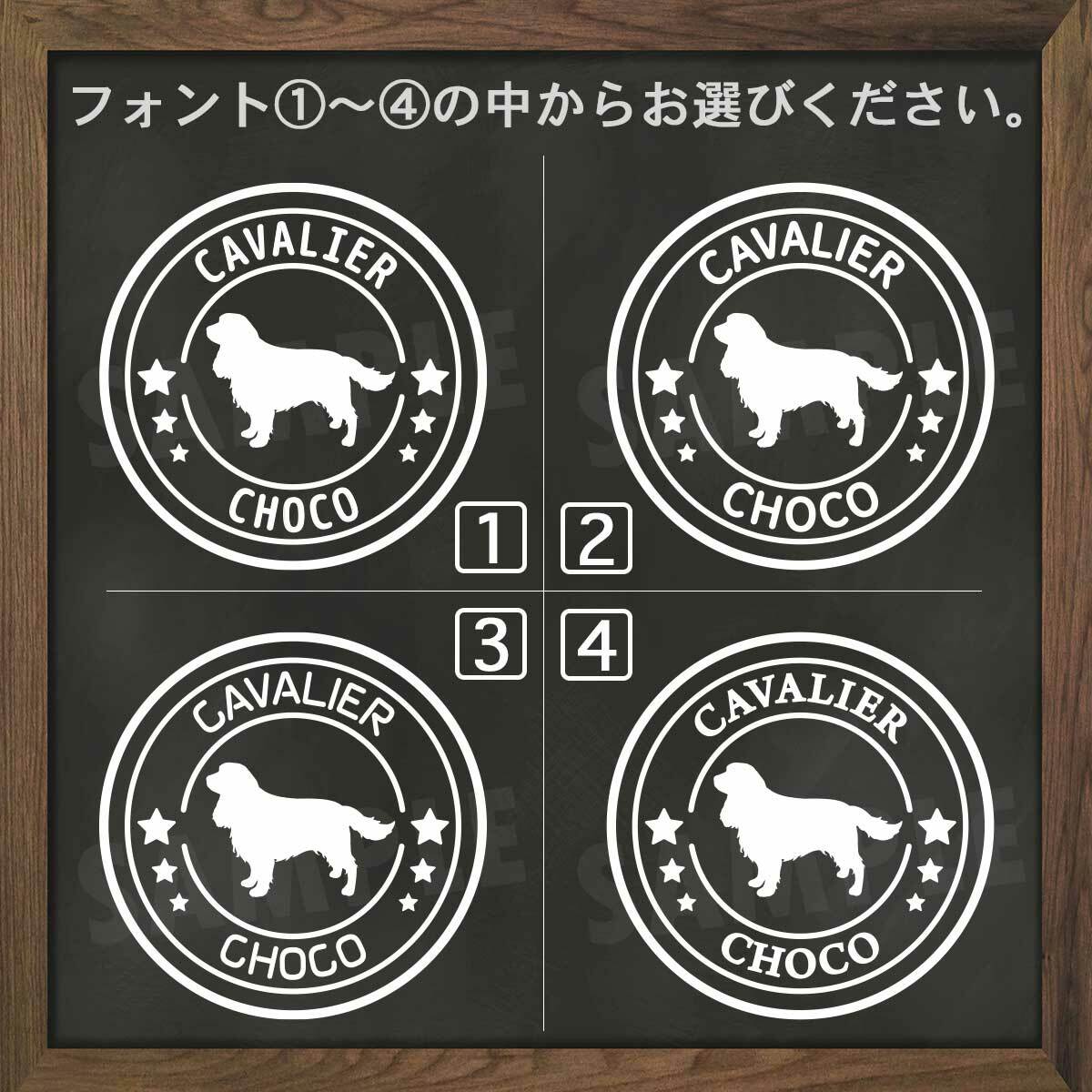 犬種別、名入れができる丸型ステッカー、キャバリアverとなります。