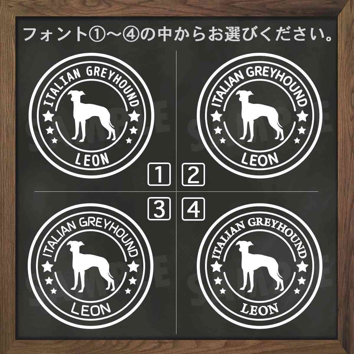 犬種別、名入れができる丸型ステッカー、イタリアングレーハウンドverとなります。