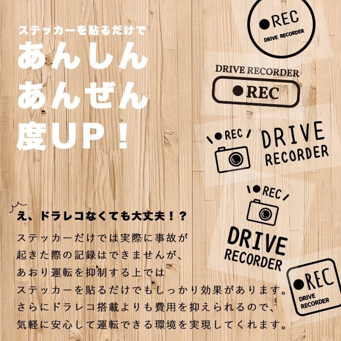 シンプルなデザインのドライブレコーダー搭載車、ドライブレコーダー録画中ステッカーです。