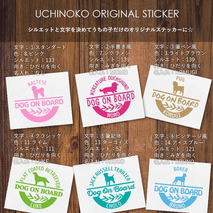 ※犬種名、ワンちゃんのお名前は大文字アルファベットでの制作となります。